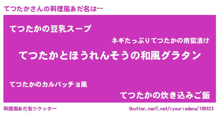 | 意味不明あだ名 | 『もやし科てつたか属』『自称てつたか』 |