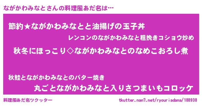 | ヘコむあだ名 | 『ながにー』『ながかわみなと(笑)』 |