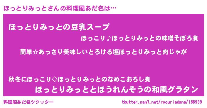 | 胡散臭い通販商品みたいなあだ名 | 『前代未聞の健康食品…その名も「ほっとりみっと」』 |