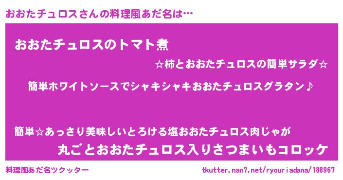 | 男性向けラノベタイトル風あだ名 | 『おおたチュロスの嫁は女の子じゃないと思った?』 |
