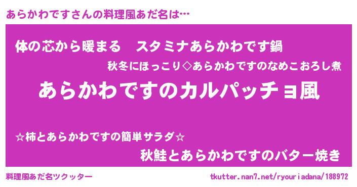 | 意味不明あだ名 | 『住所不定無職あらかわです(77歳)』 |