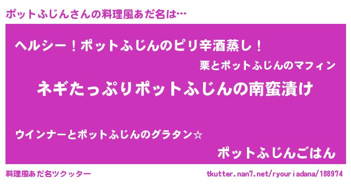 | ヒーロー風カッコイイあだ名 | 『スーパーポットフジン』『仮面ポッダー』 |