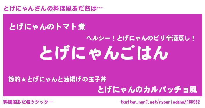 | 意味不明あだ名 | 『めかぶ科とげにゃん属』 |