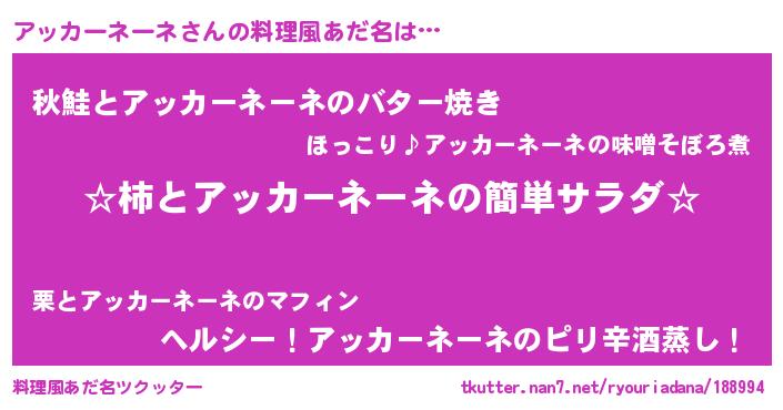 | ヒーロー風カッコイイあだ名 | 『ネオアッカーネーネ』 |