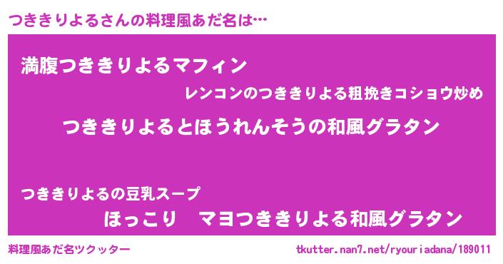 | 欧米人風あだ名 | 『トリンドルつききりよる』 |