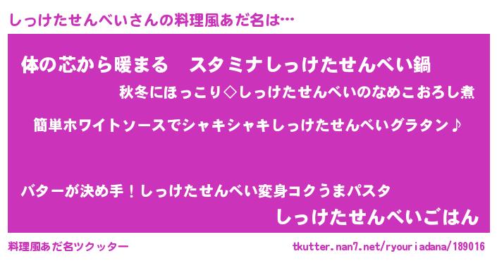 | 男性向けラノベタイトル風あだ名 | 『しっけたせんべいの嫁は女の子じゃないと思った?』 |