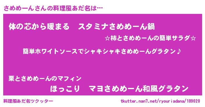 | ポケモン風あだ名 | 『ヒサメメーン』『サメメダネ』 |