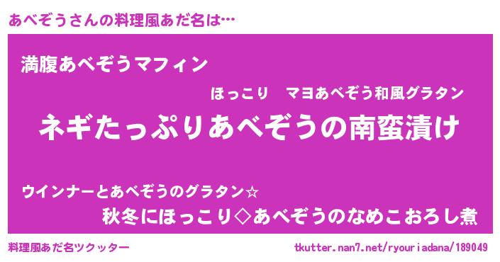 | 胡散臭い通販商品みたいなあだ名 | 『億万長者になれるブレスレット…その名も「あべぞう」』 |