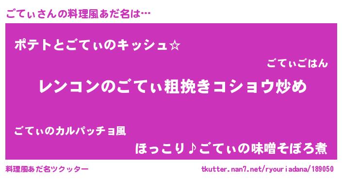 | 女子向けラノベタイトル風あだ名 | 『ごてぃなんてお断りですっ。』 |