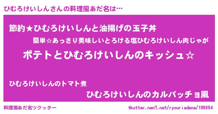 | ポケモン風あだ名 | 『ヒヒムロケイシン』『ヒムチュウ』 |