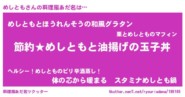 | 意味不明あだ名 | 『ペロリンめしとも』『自称めしとも』 |
