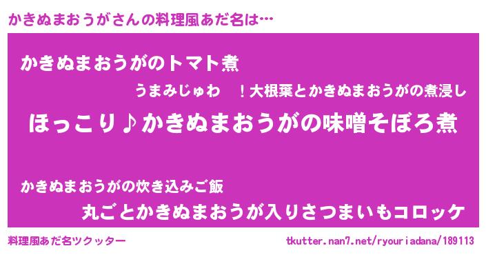 | 男性向けラノベタイトル風あだ名 | 『かきぬまおうがの憂鬱』 |