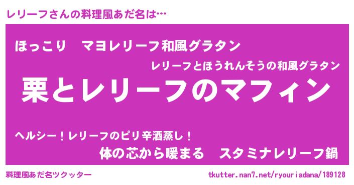 | ヒーロー風カッコイイあだ名 | 『仮面レリダー』『ウルトラレリーフマン』 |