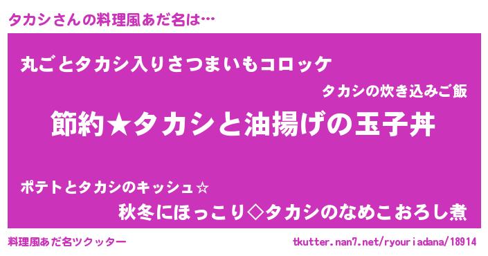 | 意味不明あだ名 | 『ペロリンタカシ』『永久保存タカシ』 |
