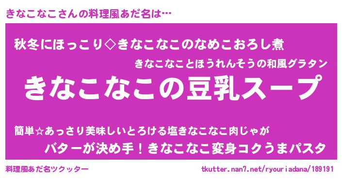 | 胡散臭い通販商品みたいなあだ名 | 『信頼と実績のサプリメント…その名も「きなこなこ」』 |