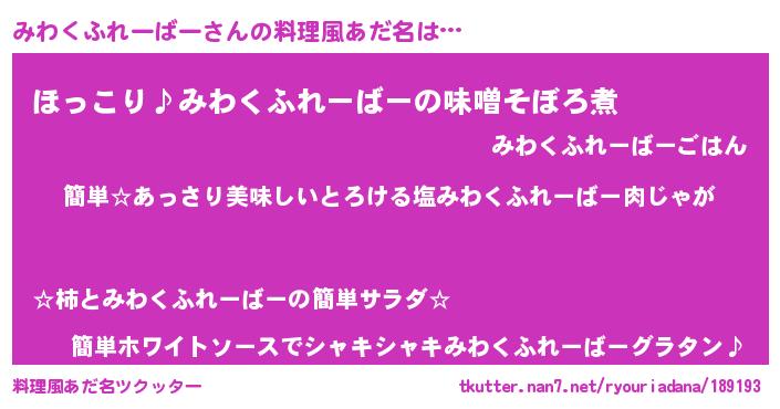| ヘコむあだ名 | 『みわくふれーばー(爆)』『みわにゅー』 |