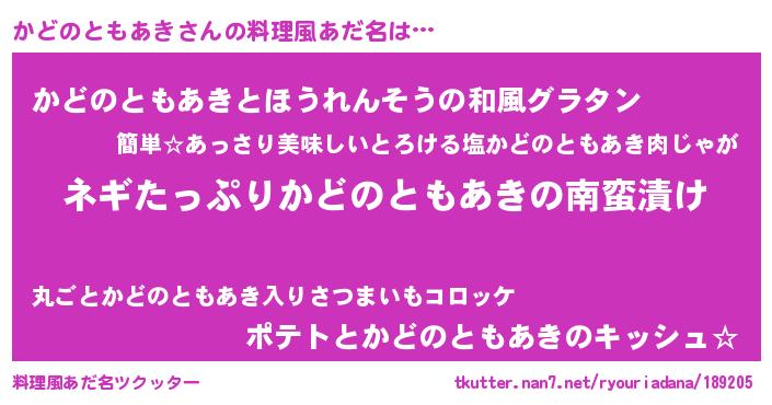 | ヘコむあだ名 | 『かどにゅー』『かどっ子』『豆乳』 |