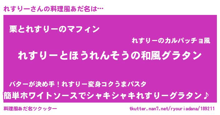| 意味不明あだ名 | 『ニラ科れすりー属』『ペロリンれすりー』 |