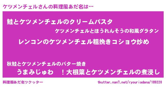 | 女子向けラノベタイトル風あだ名 | 『ケツメンチェルなんてお断りですっ。』 |
