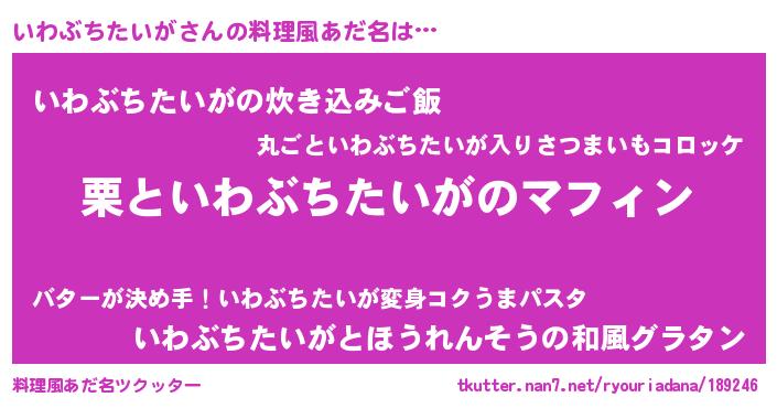 | ヘコむあだ名 | 『いわにゅー』『いわぶちたいが(笑)』 |