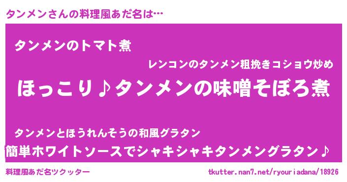 | 女子向けラノベタイトル風あだ名 | 『(仮)タンメンのやんごとなき事情』 |