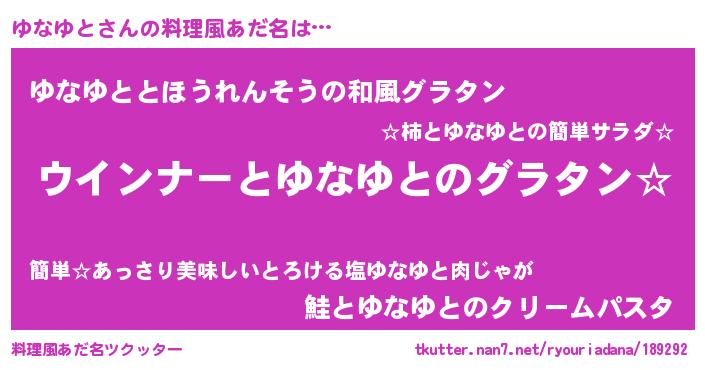 | ヘコむあだ名 | 『豆乳』『ゆなゆと(笑)』『ゆなもー』 |