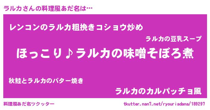| ヘコむあだ名 | 『ラルにゅー』『ラルお』『つくし』 |
