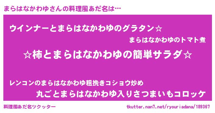 | 意味不明あだ名 | 『まらはなかわゆフォーエバー』 |