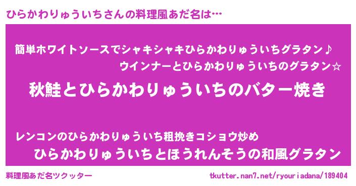 | 可愛いあだ名 | 『ひらかわりゅういちママ』『ひっらぃー』 |
