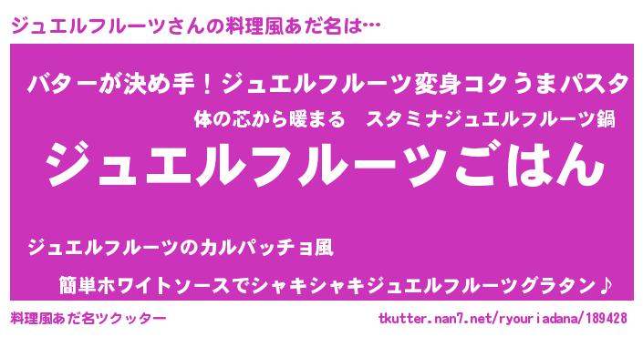 | 男性向けラノベタイトル風あだ名 | 『ジュエルフルーツスレイヤー』 |