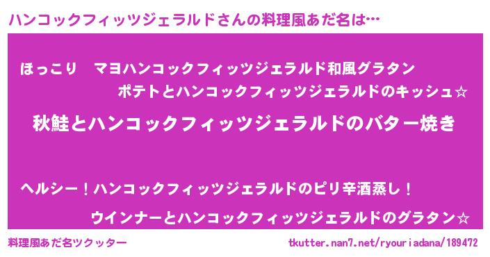 | 意味不明あだ名 | 『永久保存ハンコックフィッツジェラルド』 |