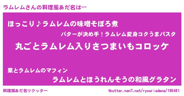 | 意味不明あだ名 | 『住所不定無職ラムレム(47歳)』 |