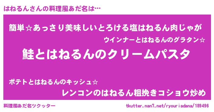 | ヘコむあだ名 | 『はねるん(笑)』『酢こんぶ』 |