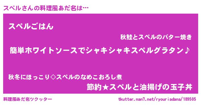 | 女子向けラノベタイトル風あだ名 | 『スペル様がみてる』『スペルの契約王妃』 |