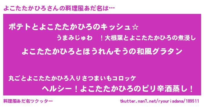 | 女子向けラノベタイトル風あだ名 | 『よこたたかひろの玉の輿計画!』 |