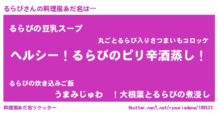 | 胡散臭い通販商品みたいなあだ名 | 『芸能人もオススメする高麗人参…その名も「るらび」』 |