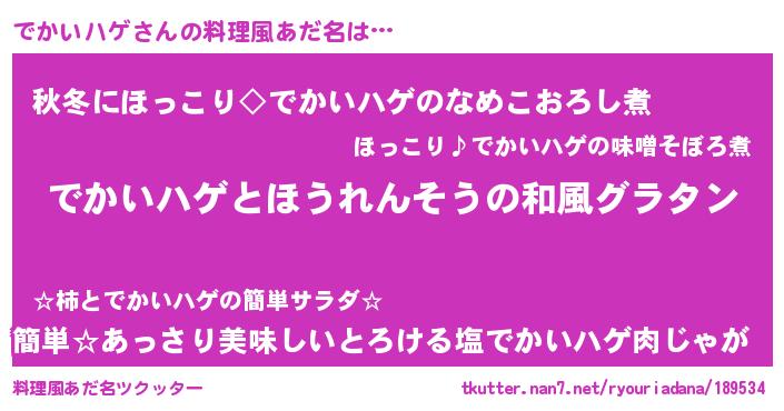 | 胡散臭い通販商品みたいなあだ名 | 『来世でも幸せになれる水素水…その名も「でかいハゲ」』 |