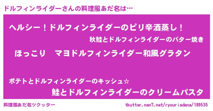 | 女子向けラノベタイトル風あだ名 | 『悪役ドルフィンライダーに転生したようですが、知った事ではありません』 |