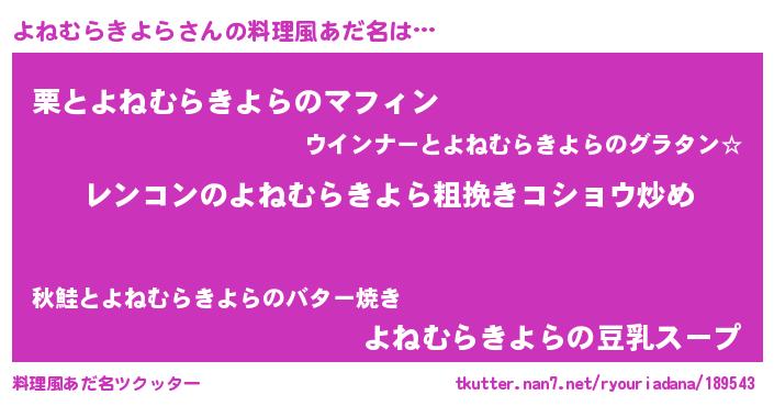 | 意味不明あだ名 | 『自称よねむらきよら』 |