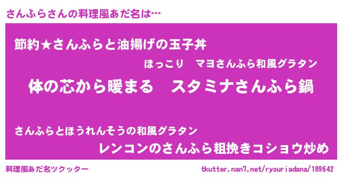 | 意味不明あだ名 | 『さんふらフォーエバー』『自称さんふら』 |