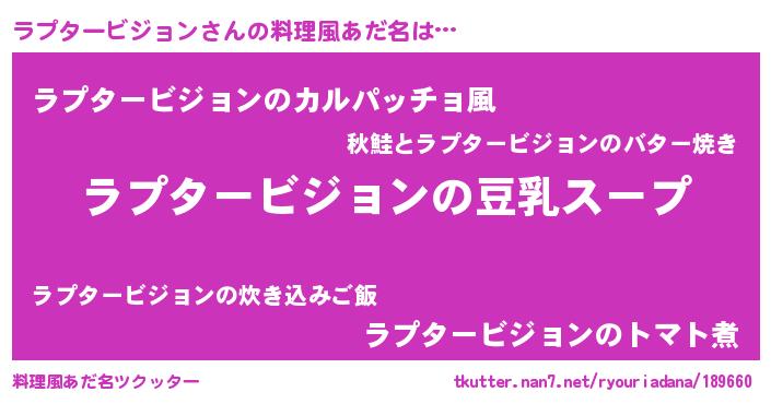 | ヘコむあだ名 | 『ラプ太郎』『ラプタービジョン(笑)』 |