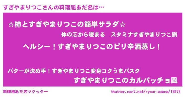| 男性向けラノベタイトル風あだ名 | 『Re:すぎやまりつこから始める異世界生活』 |