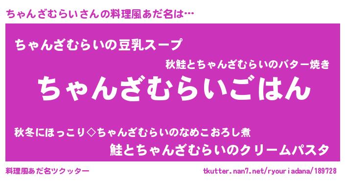 | 男性向けラノベタイトル風あだ名 | 『チャンザムライスレイヤー』 |