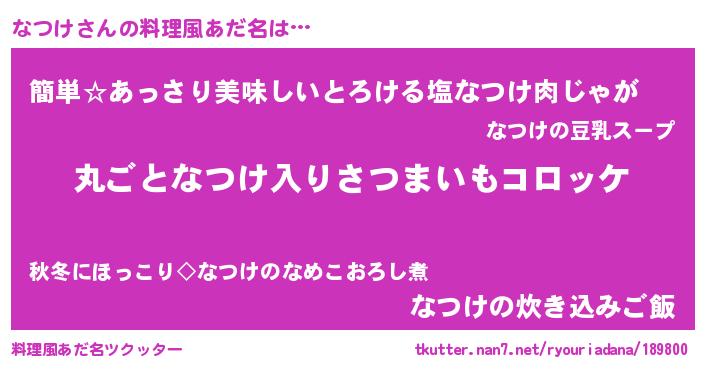 | 意味不明あだ名 | 『住所不定無職なつけ(10歳)』『自称なつけ』 |