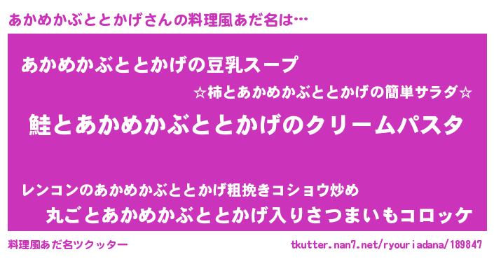 | ヒーロー風カッコイイあだ名 | 『慈愛の使者あかめかぶととかげ』 |