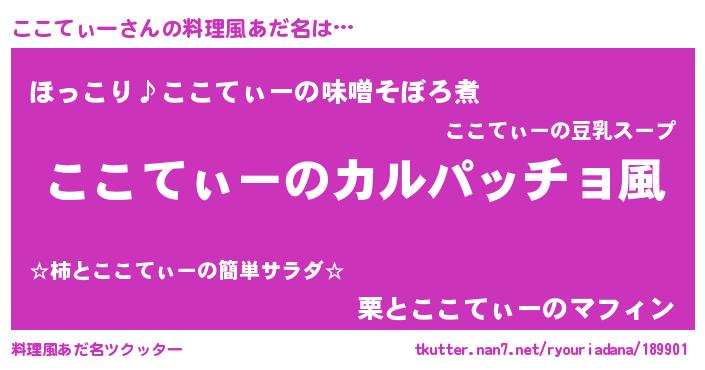 | 意味不明あだ名 | 『住所不定無職ここてぃー(98歳)』 |