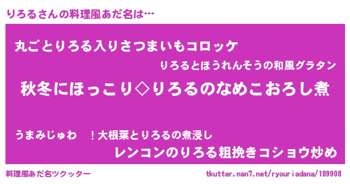 | 男性向けラノベタイトル風あだ名 | 『りろるに滅ぼされるだけの簡単なお仕事です』 |