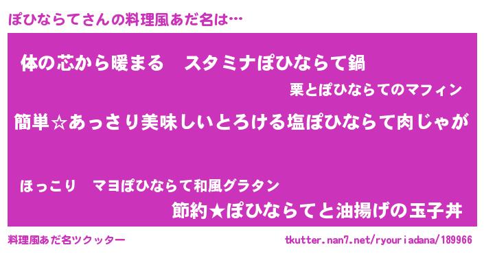 | ヘコむあだ名 | 『ぽひならて(笑)』『牛乳』『ぽひを』 |
