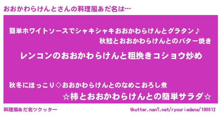 | 意味不明あだ名 | 『自称おおかわらけんと』 |