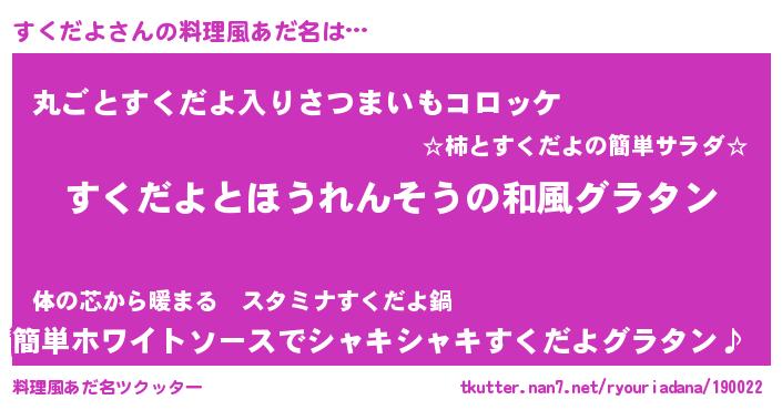| ピコ太郎風あだ名 | 『スク十郎』『ピス八郎』『スコ史郎』 |